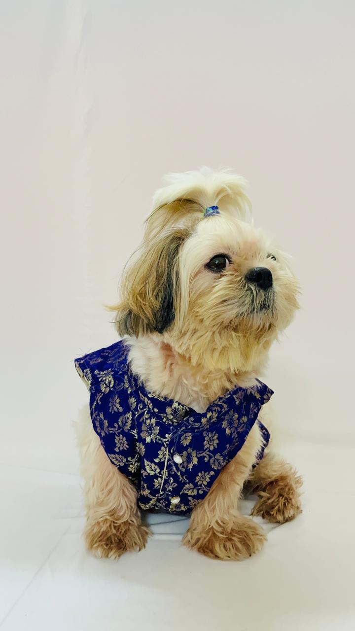 Description: Give your pet Royal look with our Blue Majesty Sherwani, featuring a sophisticated design and a stylish pocket for added flair. It accompanies with moonlight designs.