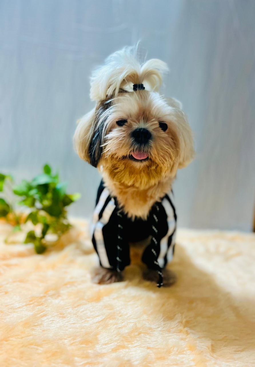 A cozy pet hoodie lined with soft fur on the inside, providing warmth and comfort for your furry friend during chilly weather.