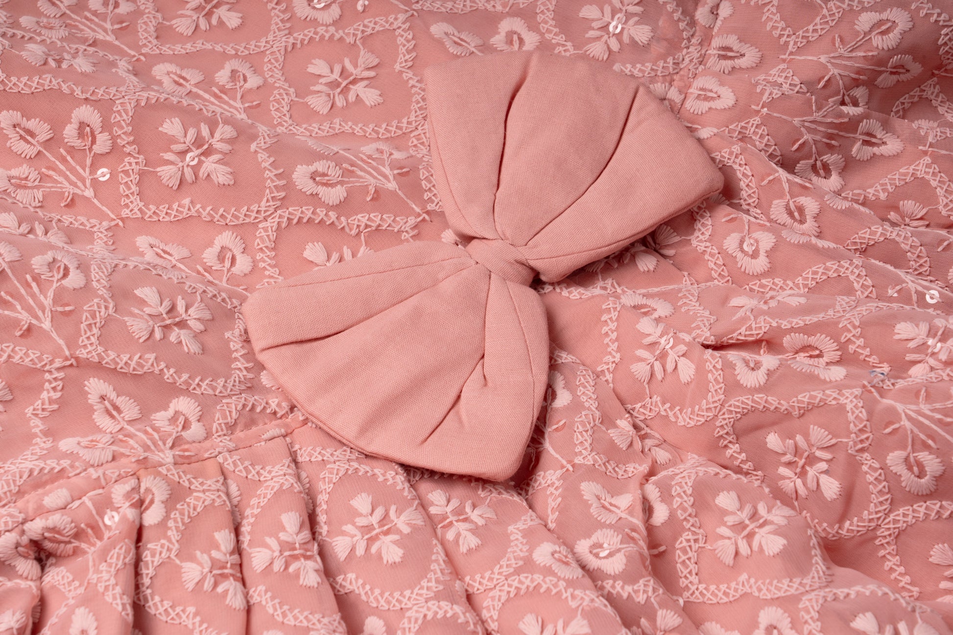 A soft peach organza dress with lining—elegant, festive, and customizable into a kurta too!
