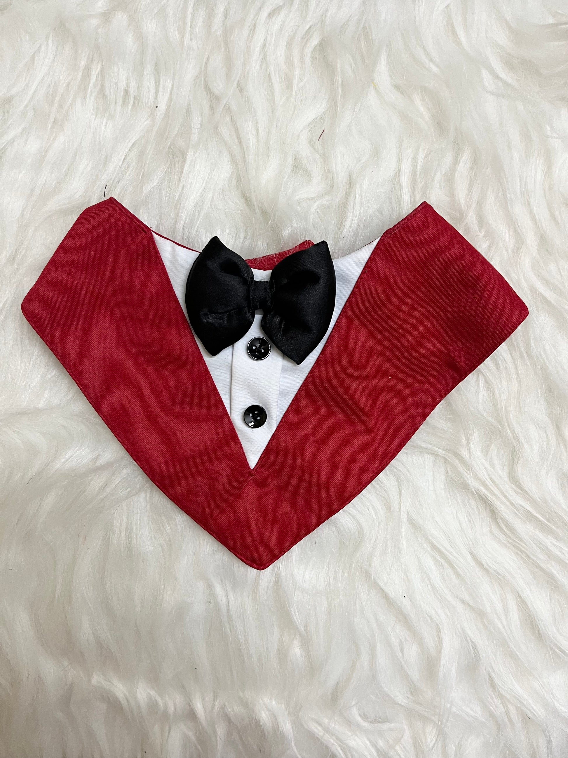 The Tuxedo Bandana for pets features a sophisticated and charming design, mimicking a classic tuxedo attire. It adds a touch of elegance to your furry friend's appearance, perfect for special occasions or casual outings where they want to make a statement. Can be customized in black and white.